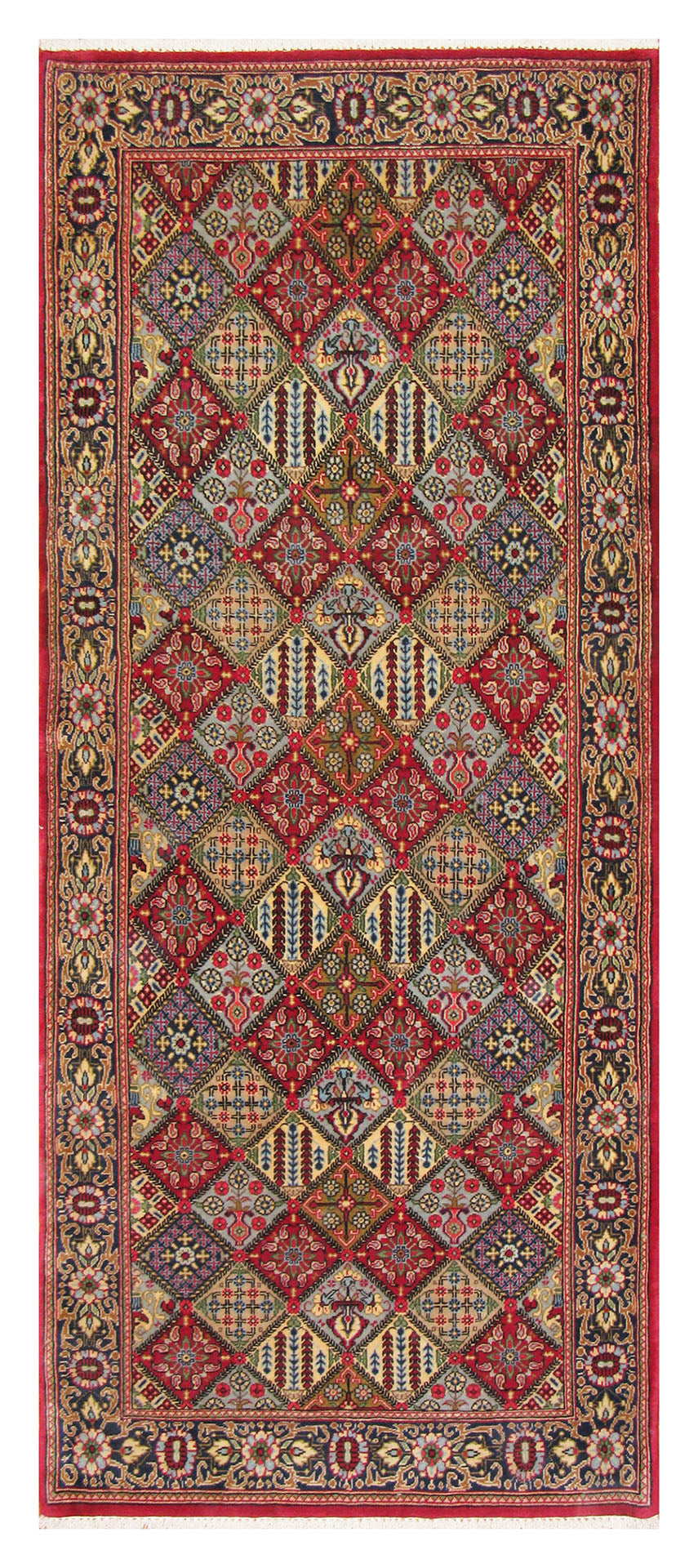 Qum rugs are among the finest rugs in the world. The quality of Qum silk rugs is particularly high. In the past and at present, Qum is one of the most important centres for producing silk, Kourk wool and silk inlaid carpets. Weavers in Qum use Persian knots and average around 600 knots per square inch. The majority are small, very fine, and beautiful; so many people hang them on the wall. The patterns are usually highly curvilinear, but they sometimes illustrate landscape features or historical stories. Qum is located in central IRAN, about 100 km south of Tehran, near Dasht-e-Kavir, a large salt desert to the east.